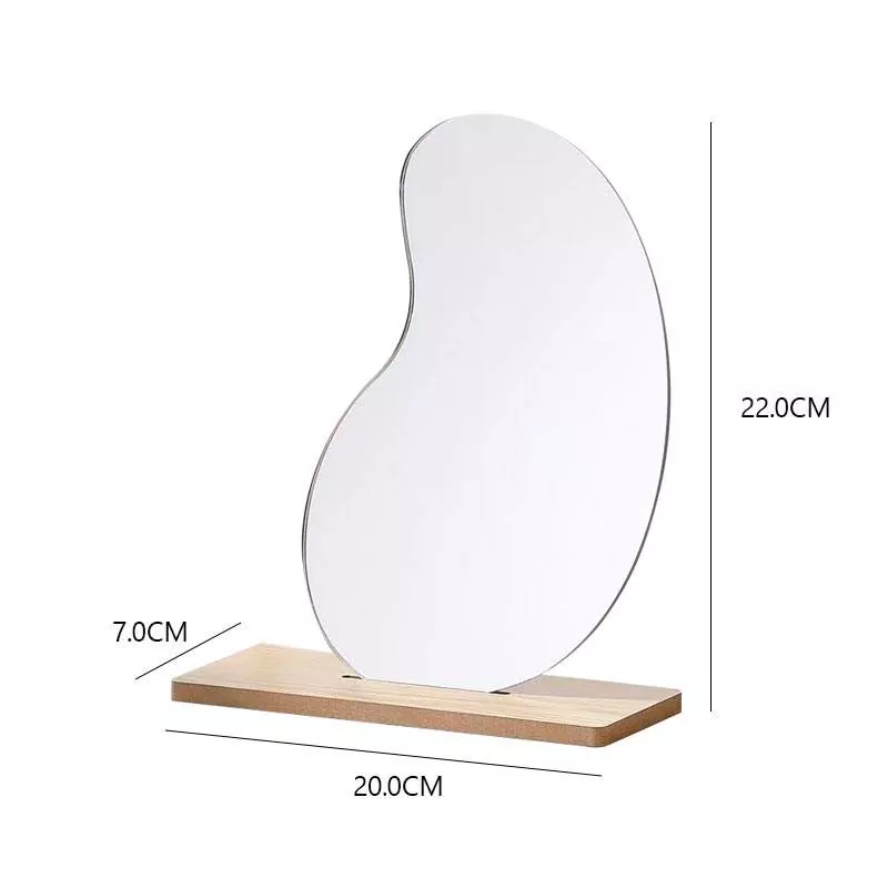 Nagtatampok ang irregular na wavy tabletop mirror na ito ng minimalist, artistikong silhouette na walang putol na pinagsama sa modernong palamuti sa bahay. Ginawa gamit ang high-definition na malinaw na salamin at makinis na sahig na gawa sa kahoy, naghahatid ito ng distortion-free reflection na perpekto para sa makeup application, skincare routine, at pang-araw-araw na pag-aayos.